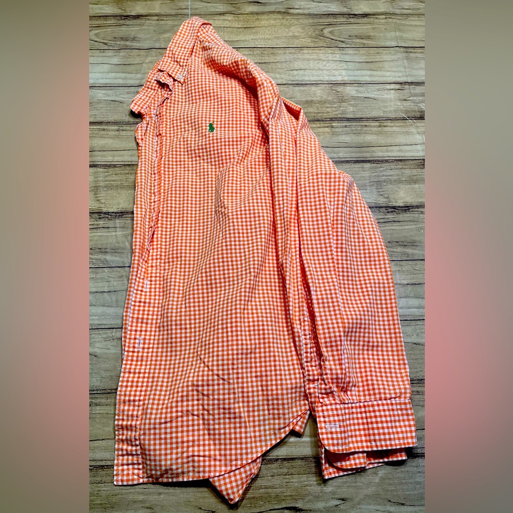 Orange checkered men’s polo Ralph Lauren button down . Size L
