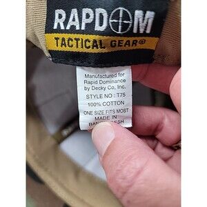 The Mens Rapdom Tactical Gear Camo Hat With Removable Patch is a versatile accessory perfect for casual or workwear occasions. Made of breathable cotton in a camouflage pattern, this one-size baseball cap from Rapid Dominance features an adjustable strap for a comfortable fit. The colorful design and removable patch add a stylish touch to this practical and functional hat for men. In good preowned condition.