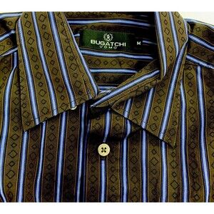 Mens Rare Pattern Bugatchi Uomo Designer Striped Button Up Dress Shirt Size M. Condition is Pre-owned.