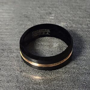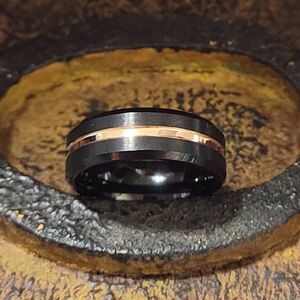 Men's Real Black Tungsten Wedding Ring 14K Gold Filled Center Groove