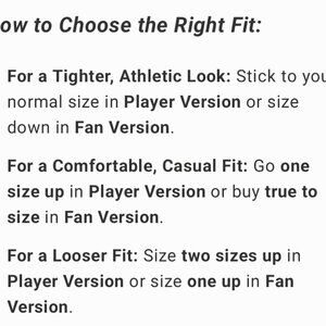 Player Version: Tight, athletic fit designed for performance. Recommended to size up by 1–2 sizes, especially if you have a broad or heavier build.
