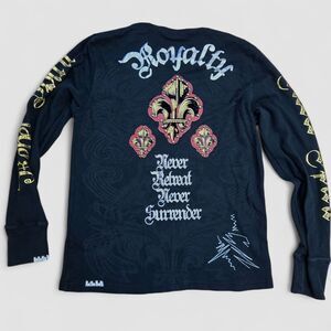 Mens Rebel Spirit Grunge Y2k Studded Skull Long Sleeve Shirt Sz XL Thermal Biker