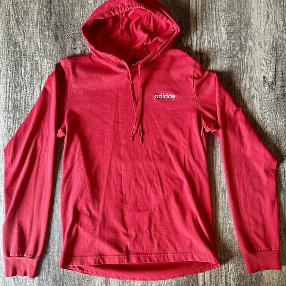 Men’s Red Adidas Pull Over Long Sleeve With Hood Size Small Cotton 88387