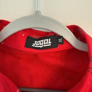 ๐ Bring the holiday cheer in this bold and festive long sleeve shirt from Jogal! Featuring an all-over pattern of pixel-style reindeer, evergreen trees, and tiny falling snowflakes on a vibrant red backgroundโthis shirt is a standout piece for any holiday gathering or office party. ๐
