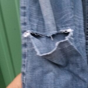 There is a hole on the front of n one leg. I don't know if the jeans were originally made that way or not.