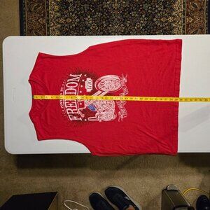 Show your patriotic pride with this bold Freedom Rider sleeveless muscle tank. Featuring a striking motorcycle graphic with the word “FREEDOM” and the historic year “1776”, this tank is perfect for warm weather and casual wear.