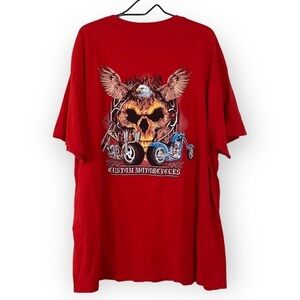 Men’s Red Graphic T Shirt Motorcycle Flaming Skull Tee Size 3XL Ride to Live