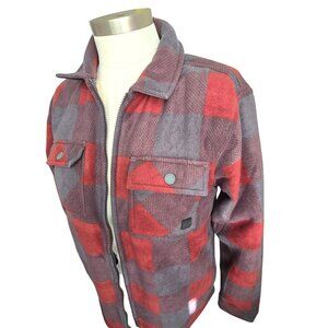 Mens Red & Gray Plaid Fleece Jacket Full Zip Size Small Voyager NWOT JJ4110