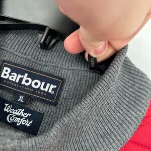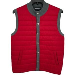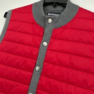 Men's Red Grey Barbour Weather Comfort Essential Gilet Quilted Snap Vest XL