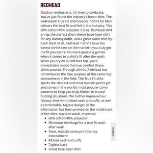 Men's Red Head Real Tree Camo T-Shirt Size XL. Excellent condition from a smoke free / pet friendly home .