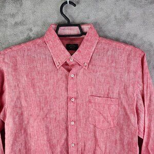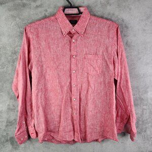 Mens Red Phil & Shark Yachting Shirt Button-Up 100% Linen Long Sleeve Size L