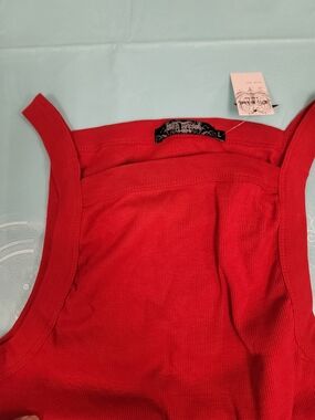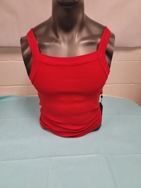 5 rib tank tops new with tag you have 1 grey size large and 4 red. 3xlarge 1 xlarge red Classic ribbed tank in vibrant red. Square neckline and wide straps for comfortable support. Slim, body-skimming, fit that layers easily. Versatile for casual and warm-weather looks. the names of the tank tops are ols skool,encrypted, and revolution all new...