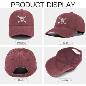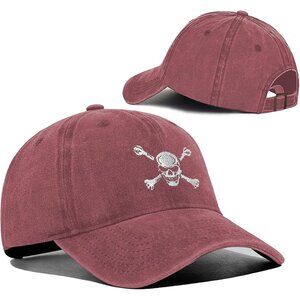 Men's Red Skull Crossbones Embroidered Skeleton Cotton Comfort Baseball Cap