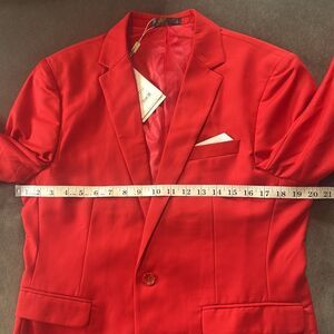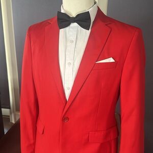 Men’s Red Slim Fit 2 Piece Prom Party Formal Suit Size 36 Jacket 32 Pants NEW