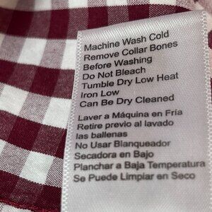 Mens Red & White Gingham Long-Sleeve Button-Down Shirt XL 100% Cotton DH7