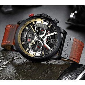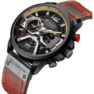 -DESIGN: Black tone color by IP plated technology, and fashion design watch dial, Leather Band, Abrasion resistance; provide comfortable wearing experience.