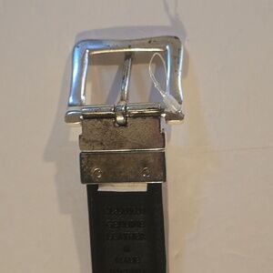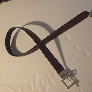 Mens Reddish Brown Leather Belt Reversible Silver Buckle Sz.M/L