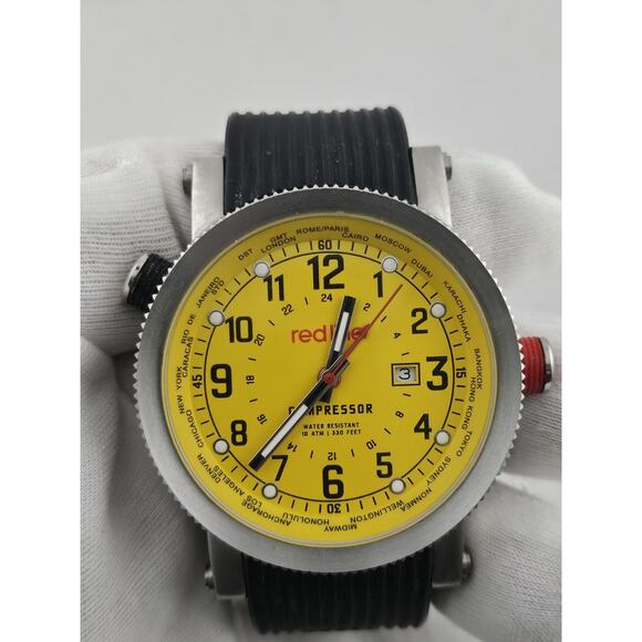 Mens Redline Compressor World Time YELLOW DIAL Quartz Watch New Battery Rare