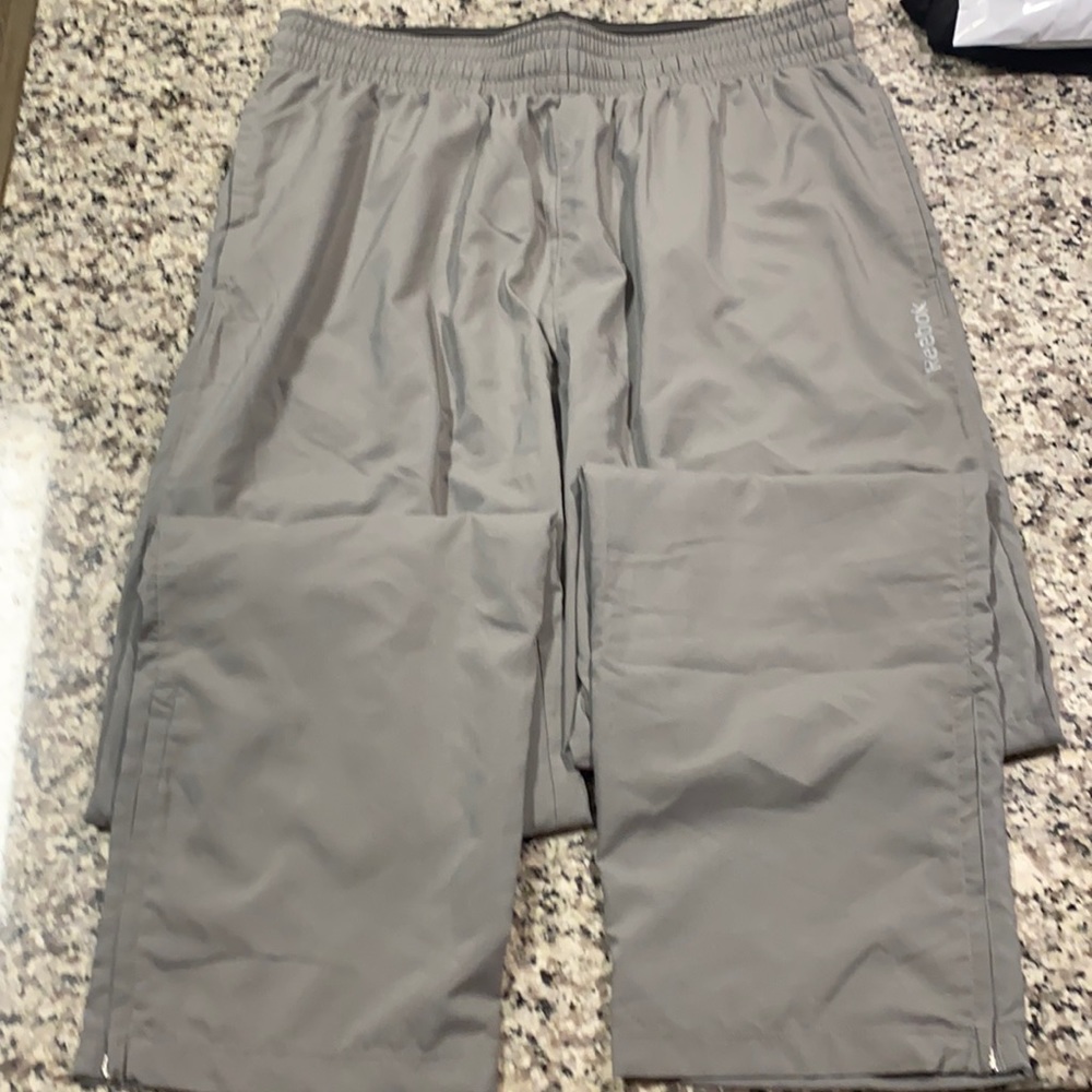 Mens Reebok track pants, bottom of leg has a zipper. never worn. Size large