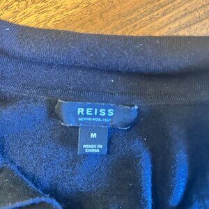 Mens Reiss Navy Merino Wool Johnny Collar Size S - Label is size Medium but fits like a Small Slim Fit. If you have a 38 chest, slim and wear a short (5'6"/5'7") this would be a great fit.