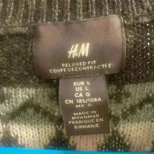 Men’s Relaxed Fit Jacquard Knit Pullover Sweater in gray white & greens. Medium weight sweater. Would look great with slacks or jeans!! Men’s size Large. By H & M EUC 60% poly 35% nylon 5% wool. SFPF HOME