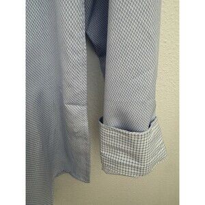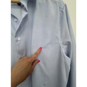 The Men's Report Collection Premium Performance Long Sleeve Button-Up Shirt in size Large features a stylish mini herringbone pattern in blue, made from polyester microfiber for a slim fit. This versatile shirt is suitable for various occasions such as travel, casual outings, or business meetings, with a classic collared neckline and button closure. The shirt's stretch fabric and slimming design make it comfortable and flattering for all seasons, whether it's winter, summer, fall, or spring. Perfect for the modern man who values both style and performance in his wardrobe. Sure is in good preowned condition with no signs of peeling or excessive wear. There is a tiny mark on front side that looks to be a pen mark as seen in photos. It is minor in my opinion. measurements in photos. I appreciate your business and strive for a five star rating. Please feel free to message with questions.