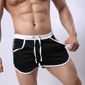 Men's Retro Gym Shorts Trunks with Pouch Black