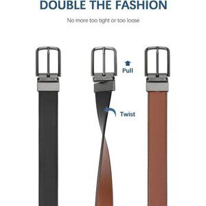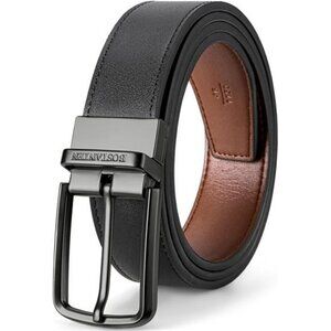 Mens Reversible Leather Belt Dress Casual Golf Adjustable Cut to Fit Buckle