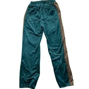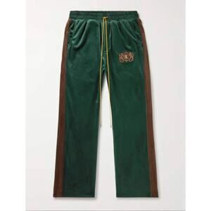 Men's Rhude NWT Forest Green Brown Crest Embroidered Velvet Track Pants Size L