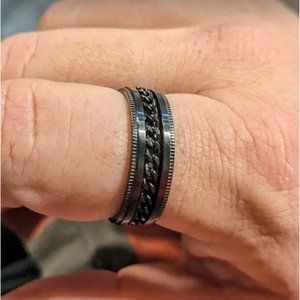COOL DESIGN: Spinner Ring Fidget Anxiety Ring for Men with Curb Chain Inlay