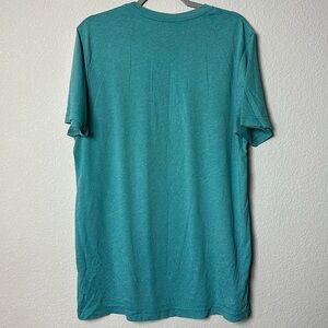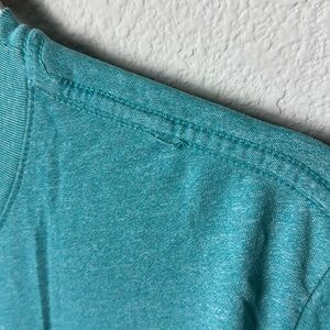 Light heathered teal. Good condition, may have slight discoloration, loose threads. No holes found.