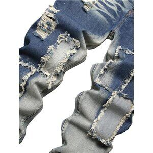 Men's Ripped Jeans Regular Fit Distressed Slim Straight Leg Stacked Biker