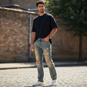 Men's Ripped Straight Jeans