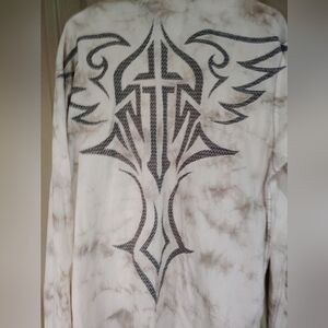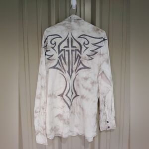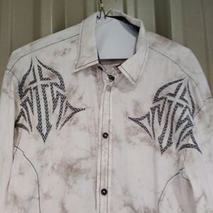 Men's Roar White, Brown & Black Embroidered Western Cowboy Rodeo Shirt XL Y2K