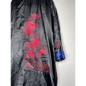 Men's Robe Kimono Reversible Embroidered Dragon Asian Black & Blue No Belt
