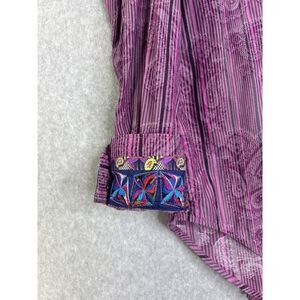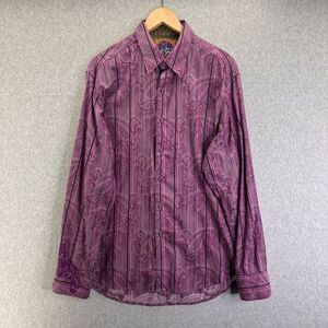Men's Robert Graham Large Long Sleeve Striped Paisley Button-Up Shirt Purple