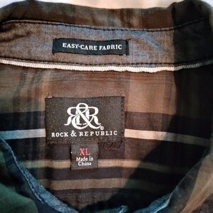 Men's Rock & Republic XL Button Up. Perfect for work or play. Green Plaid, easy care fabric. Measurements are approximate. Smoke and pet free home. X.