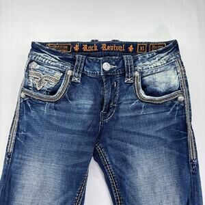 Men's Rock Revival Jeans Marston 31x29 Denim Slim Bootcut Thick Stitch Flap Pockets