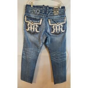 Men's Rock Revival Nikola Alt Straight Jeans Size 38/31 Relaxed Distressed
