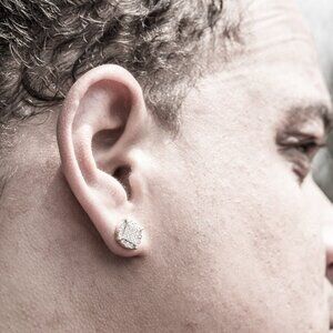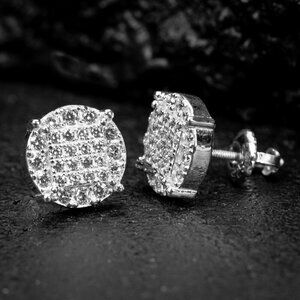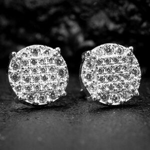 SIZE: 10mm. These round silver hip hop earrings are the best size for any occasion. silver circle earrings for men fit any standard piercing post hole, and come with screw on backs. You can’t go wrong with these earring sets.STONE: 5A High quality Cubic Zirconia. These mens silver earrings have the brightest and most clearest CZ Stones on the market. Really Shine bright with these round screw back earrings.MATERIAL: 925 Sterling Silver with White Gold Plating. These stud earrings are made of the finest material, making these the best Cubic Zirconia earrings for your ears. No green skin or irritation with these sensitive earrings, making them hypoallergenic. View more great items