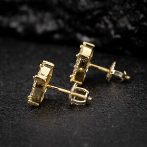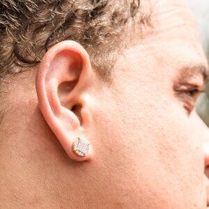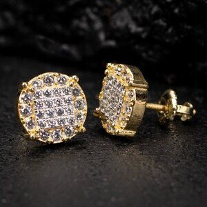 SIZE: 10mm. These round gold hip hop earrings are the best size for any occasion. gold circle earrings for men fit any standard piercing post hole, and come with screw on backs. You can’t go wrong with these earring sets.STONE: 5A High quality Cubic Zirconia. These mens gold earrings have the brightest and most clearest CZ Stones on the market. Really Shine bright with these round screw back earrings.MATERIAL: 925 Sterling Silver with 14k Yellow Gold Plating. These stud earrings are made of the finest material, making these the best Cubic Zirconia earrings for your ears. No green skin or irritation with these sensitive earrings, making them hypoallergenic. View more great items