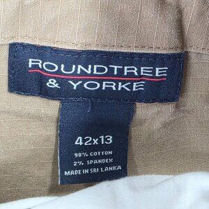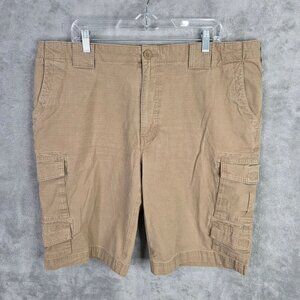 Mens Roundtree & Yorke Brown Cargo Shorts Cotton Blend Stretch 13" Inseam 42