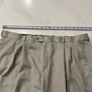 Men's Roundtree & Yorke Easy Care Tan Slacks, Size 42 x 32. Slacks feature front zipper with one hook and 2 button closure, pleated front, 2 front pockets and 2 back pockets. Slacks are in EUC with no rips, tears, stains or holes. Smoke and pet free home (2217*)
