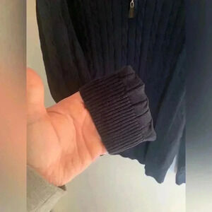Men’s Roundtree & Yorke Navy 3/4 Zip 100% Cotton Pullover Preppy Sweater Size L
