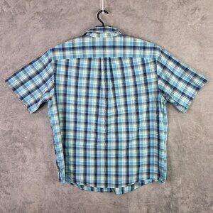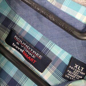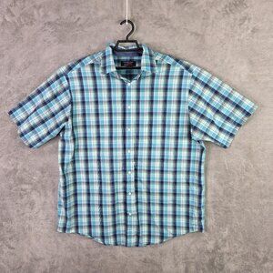 Mens Roundtree & Yorke Travel Smart Teal Plaid Shirt Button Up Short Sleeve XLT