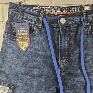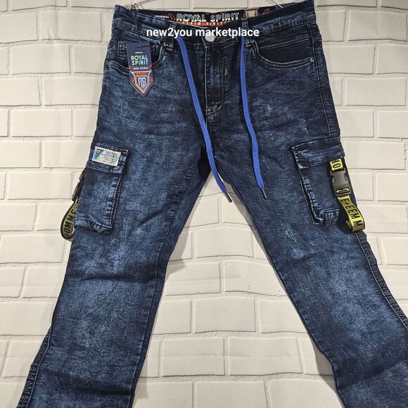 Men's Royal Spirit Denim Blue Jeans Size 34 shoestring waistband New