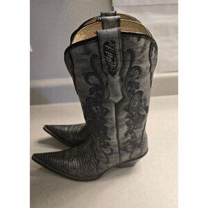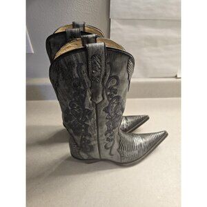 Men’s Rudel Linea Cowboy Boots Silver Gray Embroidered Lizard Print Size 6.5 E