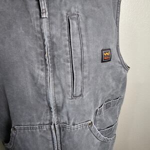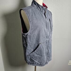 This vest features a soft buffalo check lining and a durable canvas exterior.