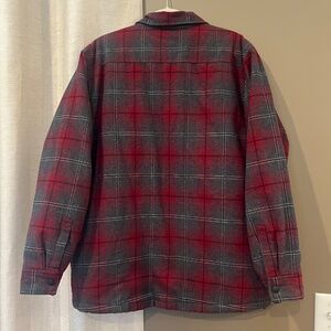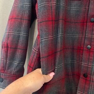 Beautiful red & gray shirt jacket that is in excellent condition, perfect for everyday wear or as the fall or winter jacket when you need that extra warmth.