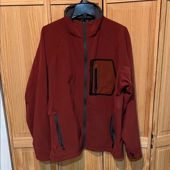 Stay comfortable and stylish with this rust-colored performance jacket. Perfect for outdoor adventures.